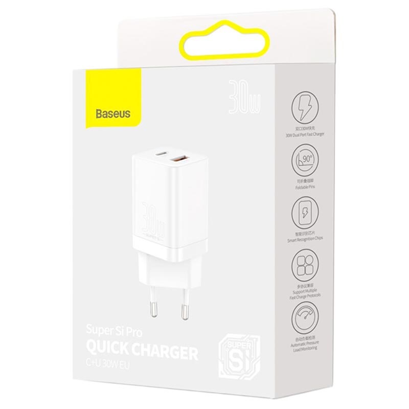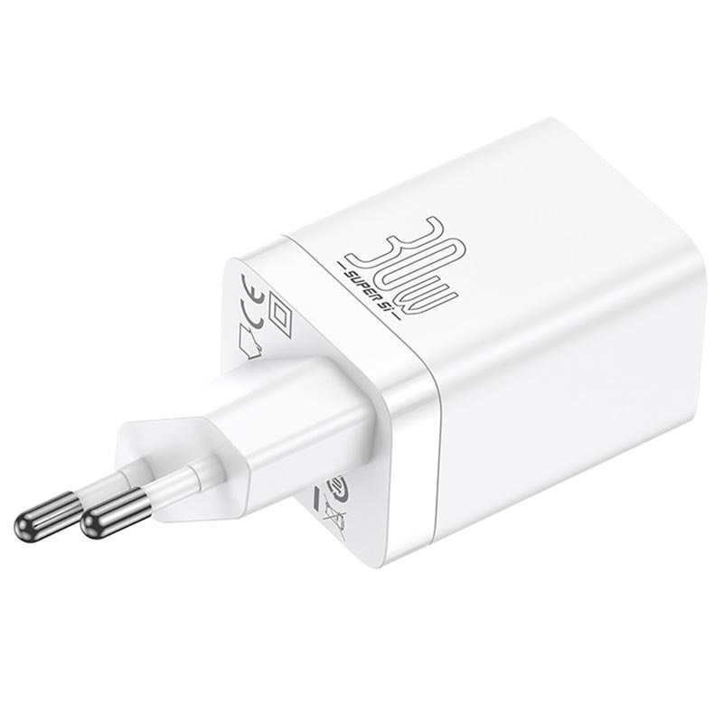 The amazing Baseus Super Si Pro fast wall charger features two ports, one USB-C and one USB-A port. When combined with a PD fast charging cable (not included), this charger supports 30W fast charging. This compact travel charger is protected against overcharging, overheating, and short circuits, so that you can have peace of mind while charging.