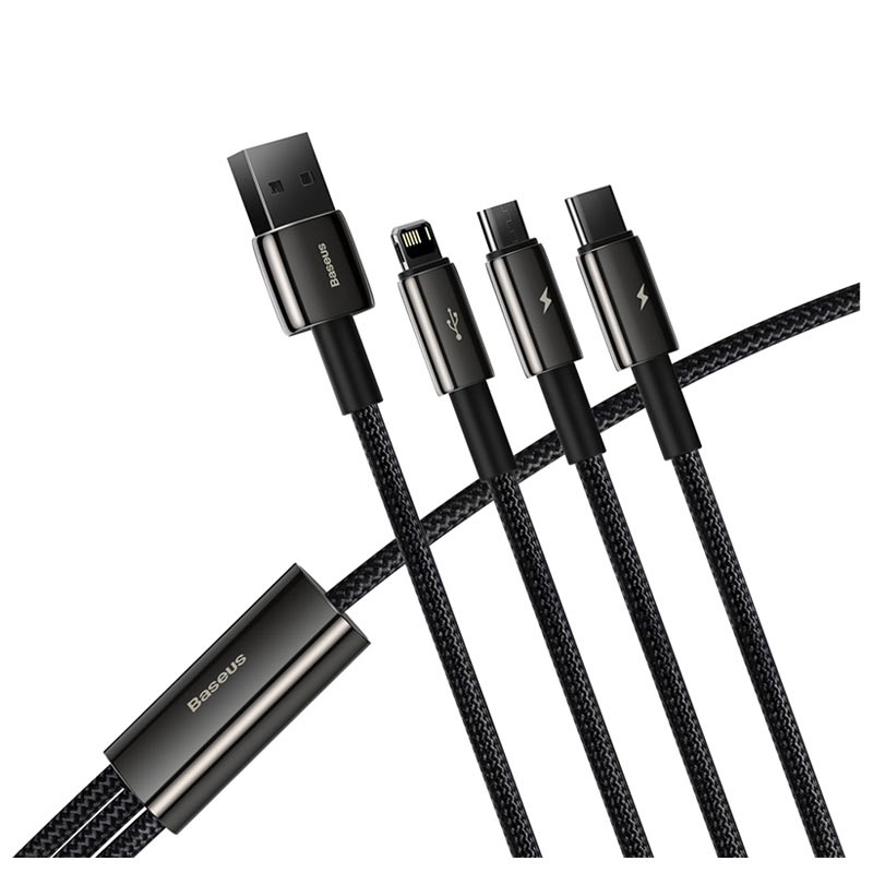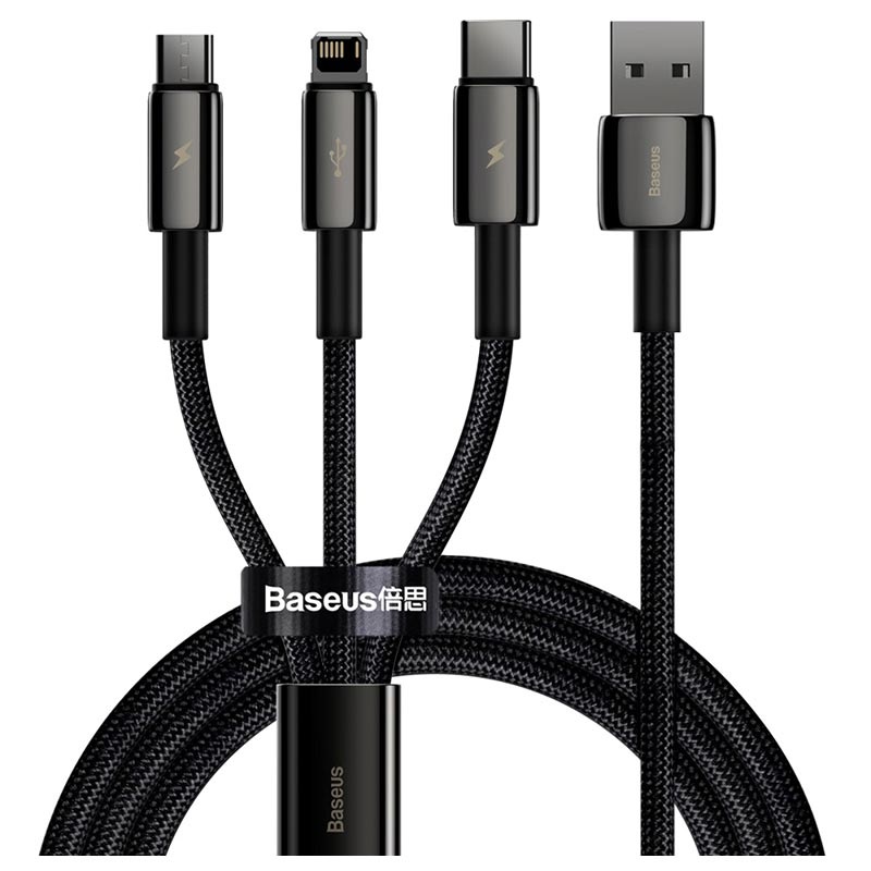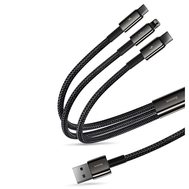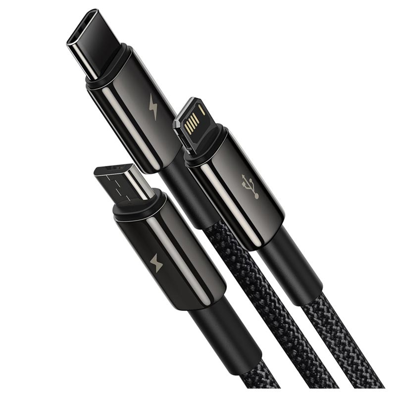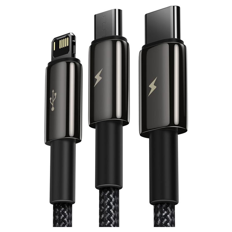 Baseus Tungsten Gold 3-in-1 Fast Charging Cable - Micro USB, USB Type-C, Lightning
