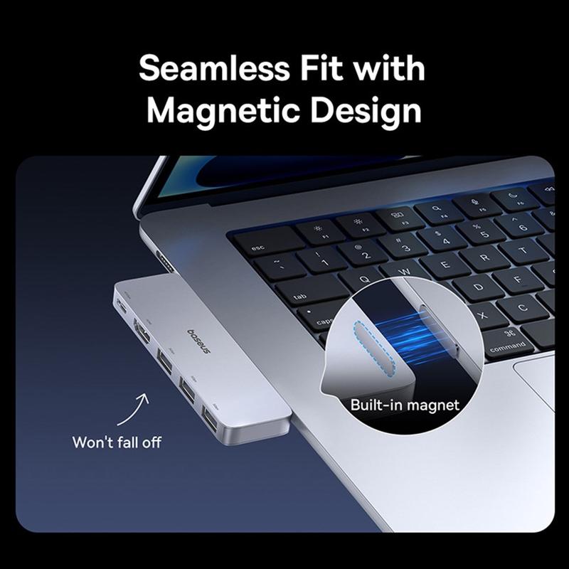 The BASEUS UltraJoy 40Gbps USB-C Multiport Hub provides everything you need for a clutter-free, high-performing workspace. Its blazing transfer speeds, robust power delivery, and versatile port selection make it the ultimate companion for daily tasks or more demanding creative projects. The magnetic design adds a layer of convenience, ensuring a stable, organized setup wherever you are.