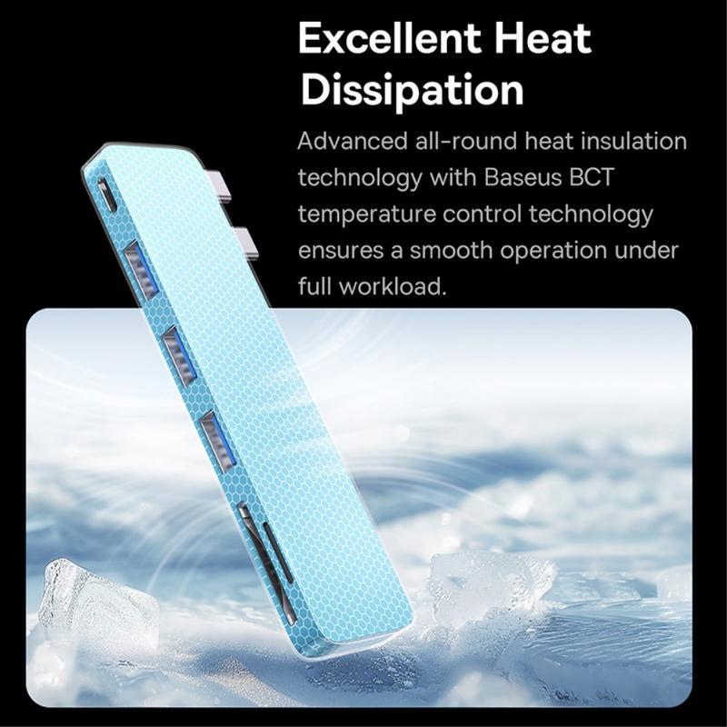 Baseus UltraJoy 6-Port USB-C Hub - 3x USB-A, USB-C, Micro SD/TF Card Slots