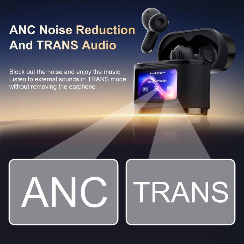 BD2 Smart Digital Display Wireless Headphones / TWS Earphones with Charging Case - Touch Screen, ANC & ENC Noise Cancelling