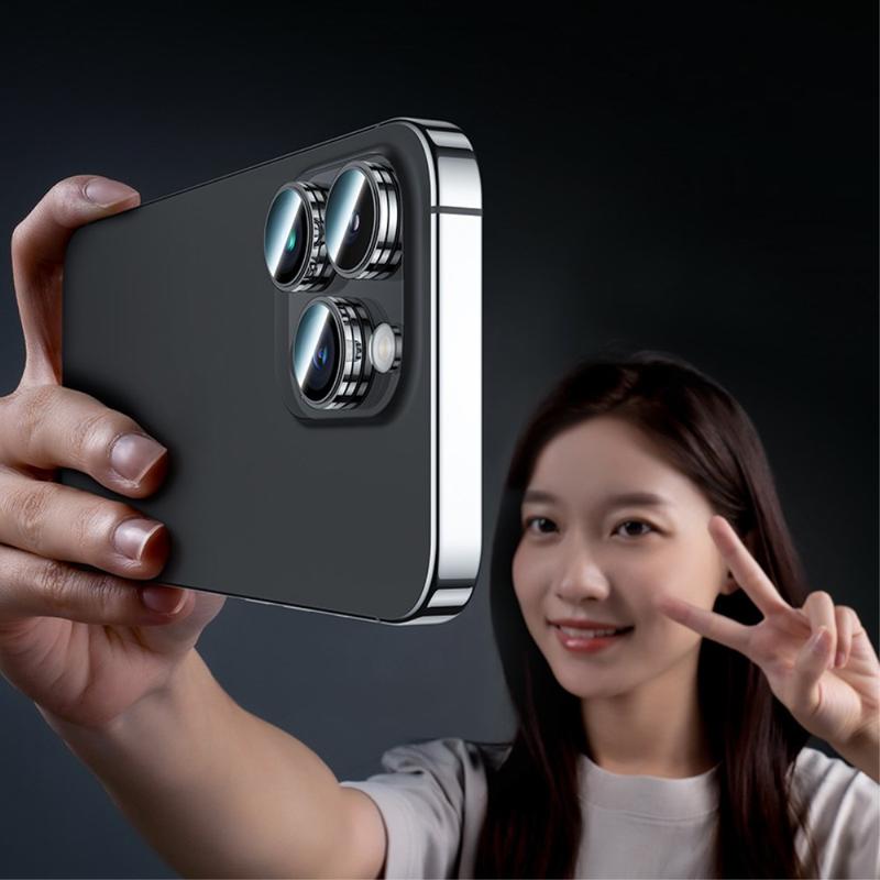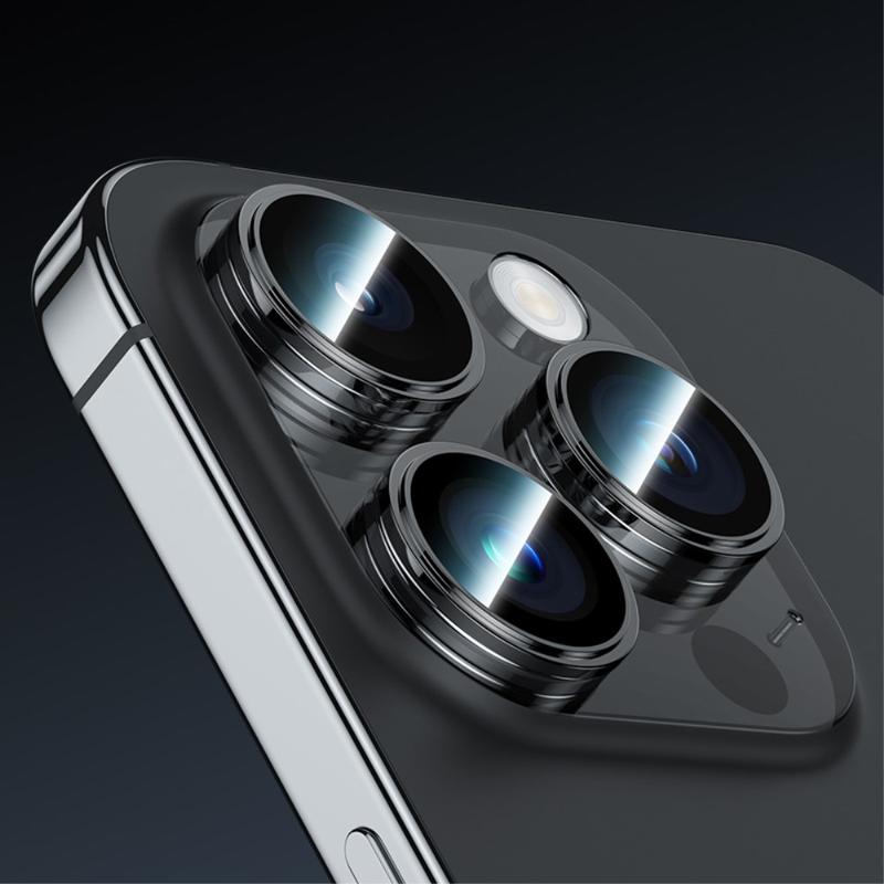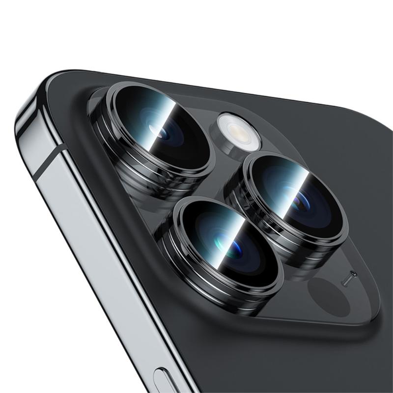 BENKS 3Pcs / Set Camera Lens Protector for iPhone 15 Pro / 15 Pro Max Corming Grila Glass Lens Film with Aluminum Alloy Frame - Black