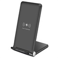 B-12 Universal Desktop Charger 3-in-1 15W Wireless Charging Folding Stand for Mobile Phone / Earphones / Smart Watch - Black