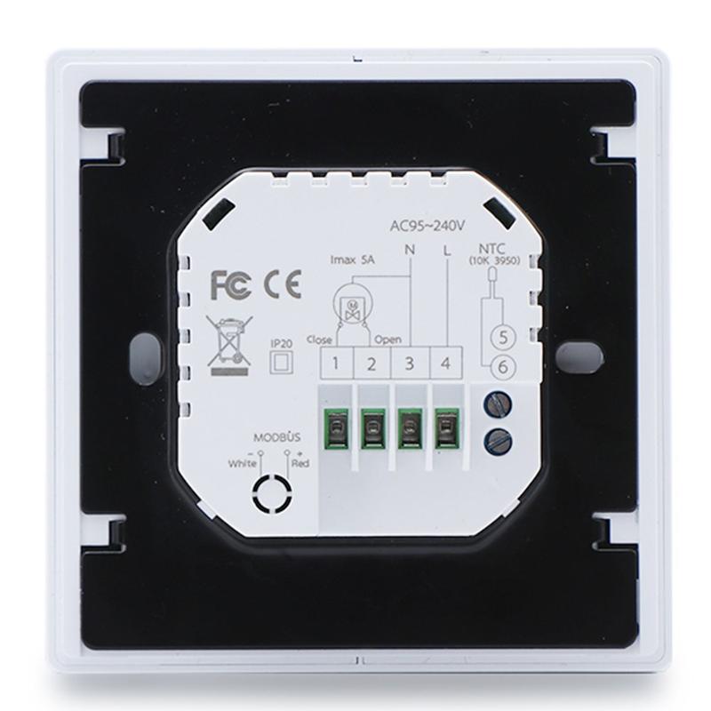 The sleek LCD display and capacitive touch buttons provide a smooth and user-friendly interface. Its ultra-thin embedded panel, frameless appearance, and rounded corners help it blend neatly into modern interiors. Whether installed in a home, hotel, or office setting, this thermostat offers a clean and minimal look while remaining simple to use every day.