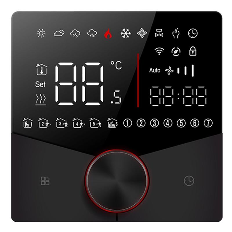 BHT-009GALW WiFi smart heating thermostat is designed to give you precise and flexible control over your indoor heating system. With support for Tuya app control, WiFi connectivity, and smart home integration, this digital thermostat helps create a more comfortable home while making temperature management easier. Its modern finish, slim built-in design, and clear LCD display make it a practical and stylish choice for homes, apartments, offices, and similar indoor spaces.