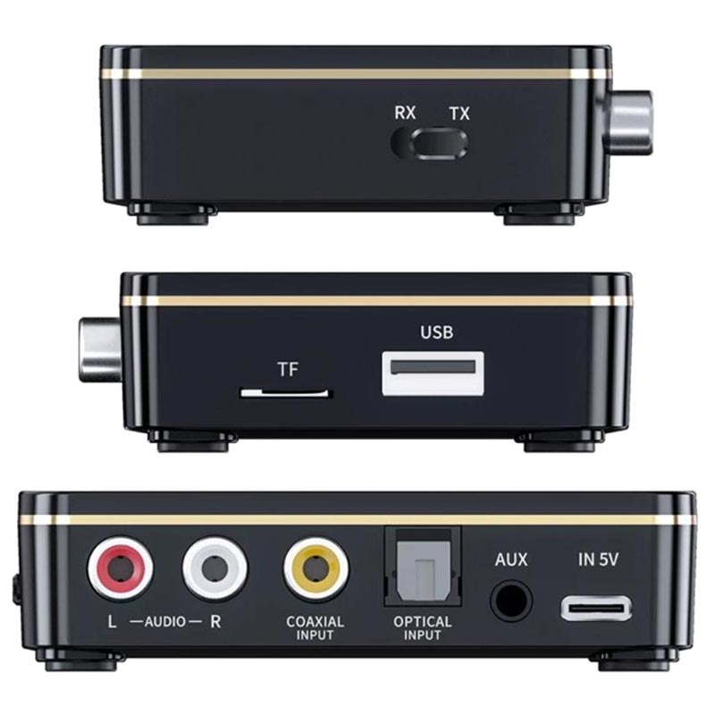 - Interface: 3,5mm AUX, 3,5mm RCA, coaxial, optical, USB, TF card