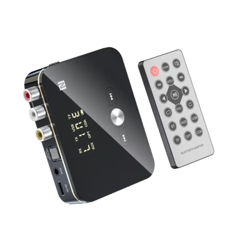 - 2-in-1 Bluetooth audio transmitter and receiver with remote control