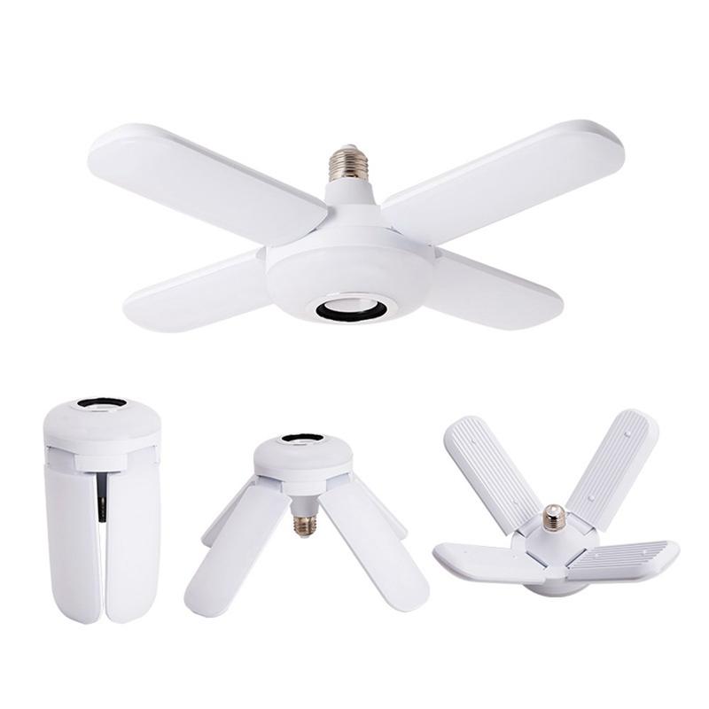 E27 Bluetooth Music Ceiling Lamp - 4-Leaf Foldable RGB Color-Changing Light with Speaker