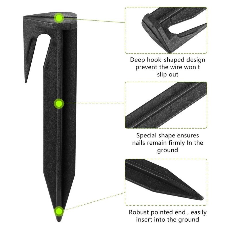 - Versatile Application: Suitable for fixing boundary wires for robotic lawn mowers, securing landscape fabrics, and anchoring garden decorations.
