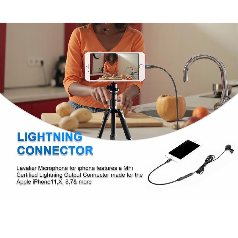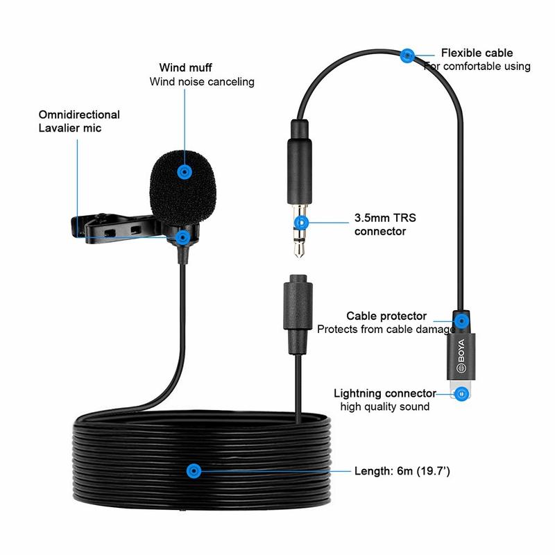 The BOYA BY-M2 clip-on lavalier microphone helps capture a clear and high-quality sound directly to all kinds iOS devices through Lightning port