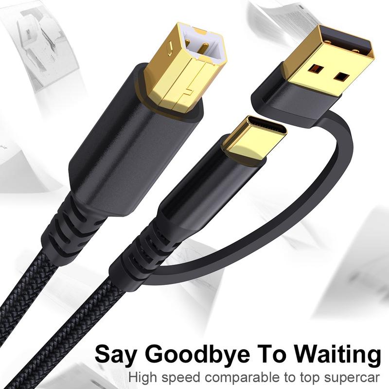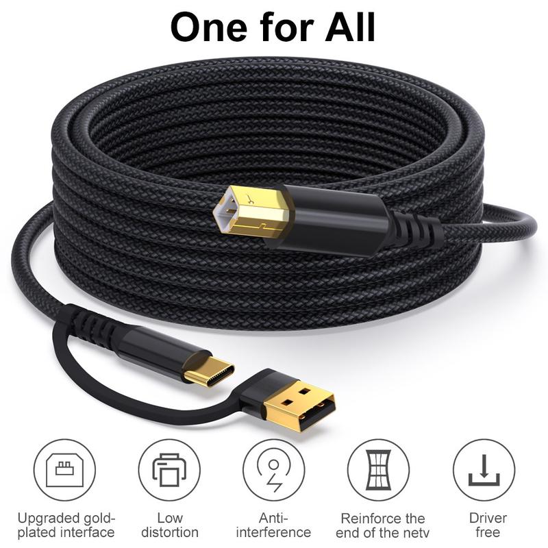 Braided 2-in-1 USB-A / USB-C to USB-B Printer Cable - 5m