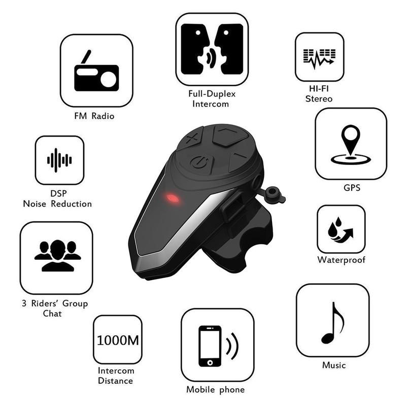 One compact unit replaces separate earphones, radio and hand signals—cutting clutter and boosting safety. Long battery life covers full-day rides, the waterproof housing eliminates weather worries, and multi-device support means you keep using it even after upgrading helmets or bikes, saving money in the long run.