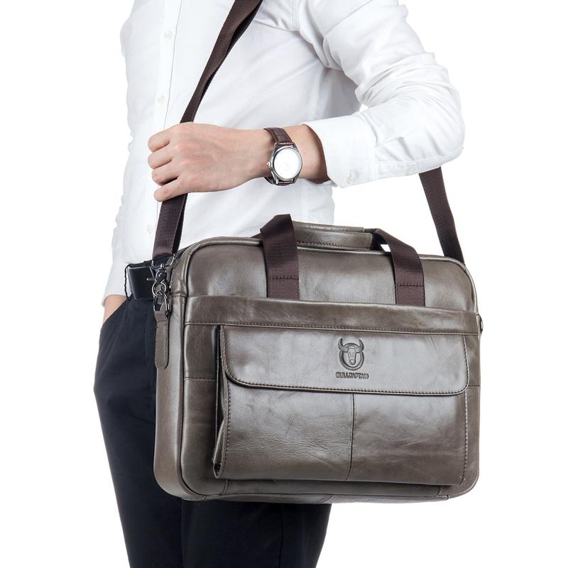 Bullcaptain 046 Men’s Leather Laptop & Crossbody Bag – Top-Layer Cowhide