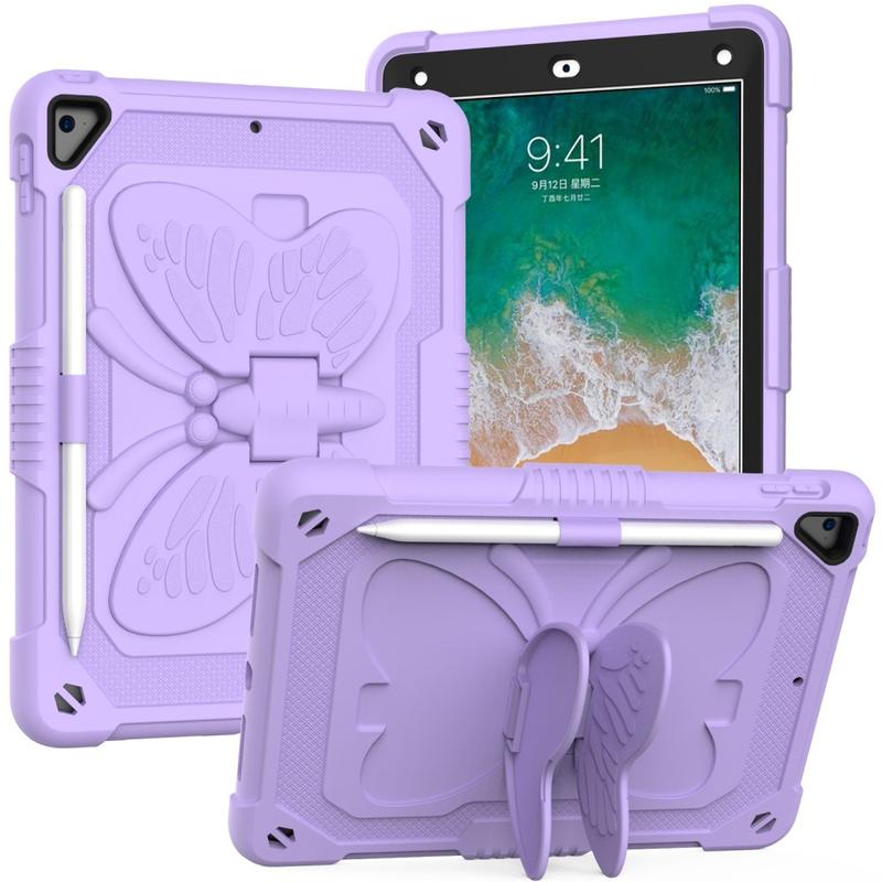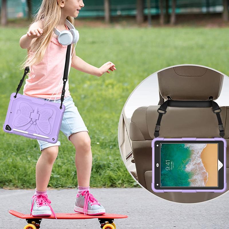 Butterfly Shape Kickstand PC + Silicone Tablet Case Cover with Shoulder Strap for iPad 9.7-inch (2018)/(2017)/iPad Air 2 - Purple