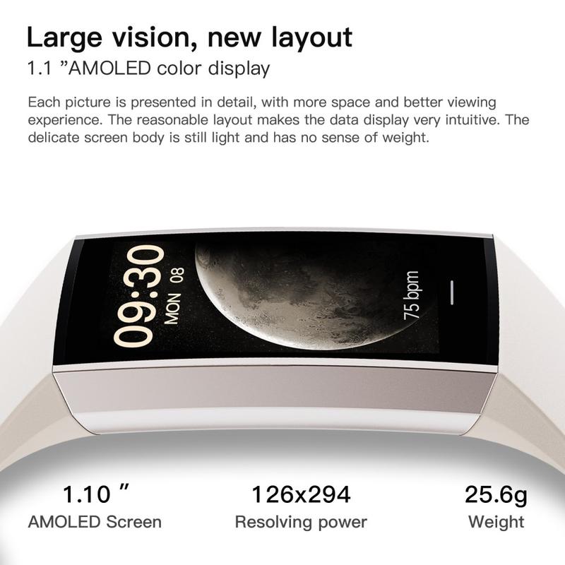 High-Resolution AMOLED Screen: Features a 1.1-inch AMOLED display with a resolution of 126*294, offering clear and vibrant visuals