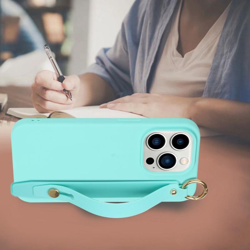 For iPhone 14 Pro Max Candy Color Phone TPU Cover Anti-drop Anti-scratch Case with Hand Strap Kickstand