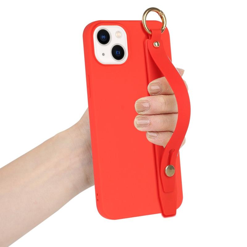 • For iPhone 14 Plus Candy Color Phone TPU Cover Anti-drop Anti-scratch Case with Hand Strap Kickstand