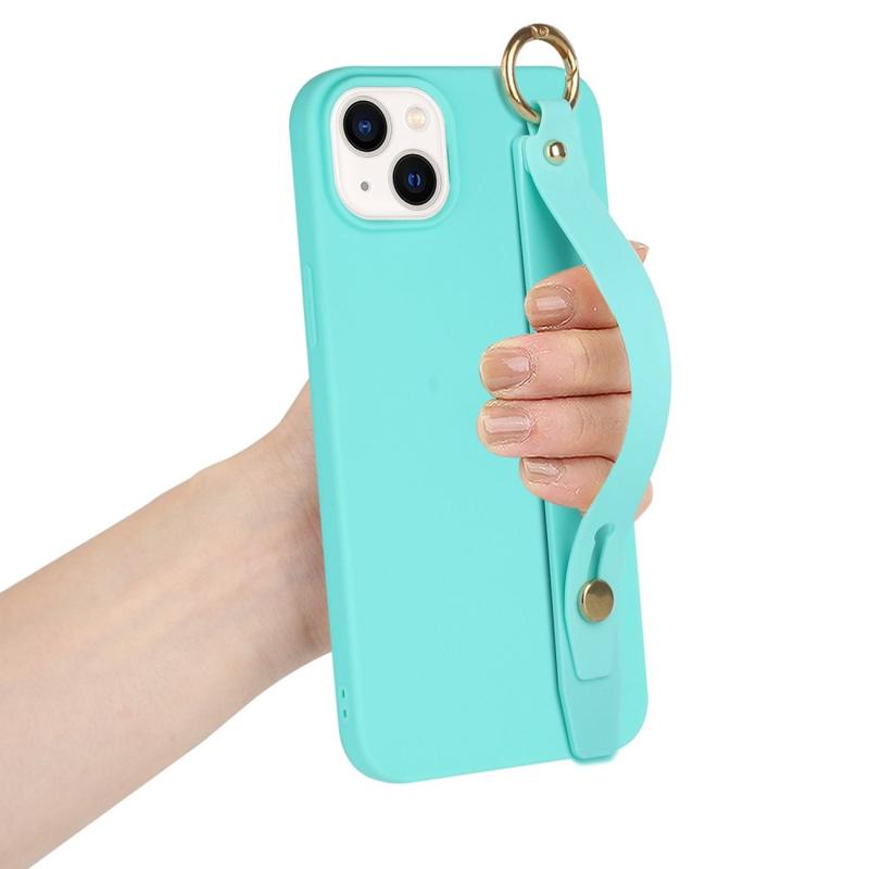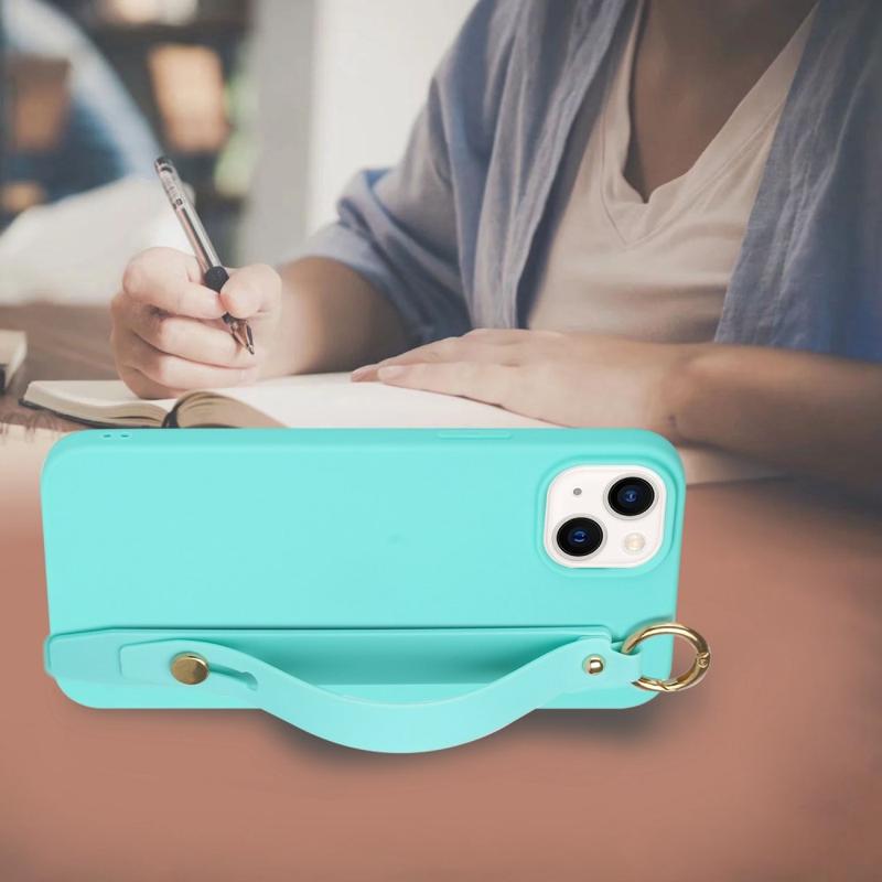 For iPhone 14 Plus Candy Color Phone TPU Cover Anti-drop Anti-scratch Case with Hand Strap Kickstand