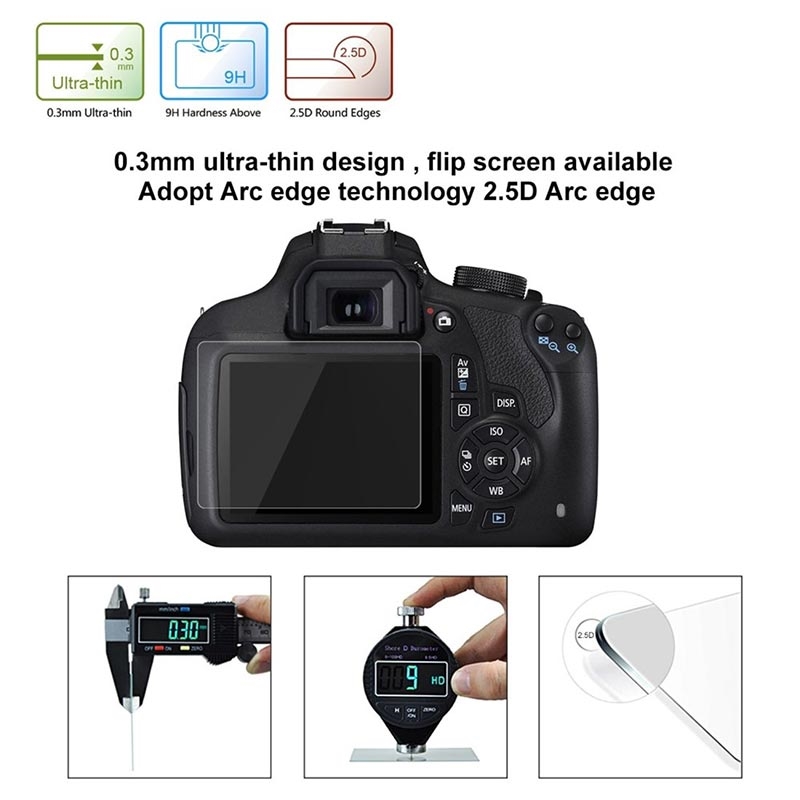 Zaštitite ekran svog skupocenog Canon EOS 1200D, 1300D digitalnog foto-aparata od ogrebotina i drugih oštećenja, uz pomoć kaljenog stakla jedinstvene obrade, od materijala koji je otporan na ogrebotine.