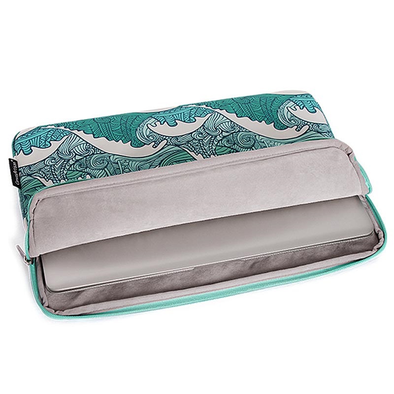 This sleeve for laptops features a unique look that stands out among old, plain laptop bags. Upon that, the outer material repels water, so you don't have to worry about spills and rain anymore. Meanwhile, the soft material on the inside provides extra protection from bumps and scratches for the device.