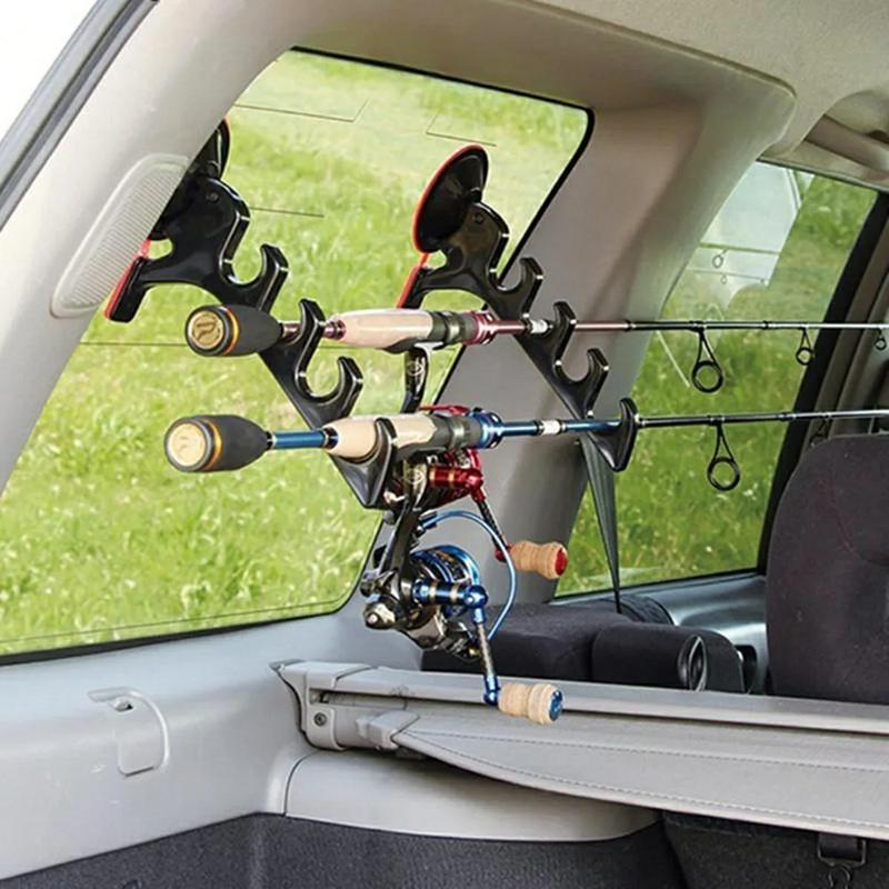 Car Suction Cup Fishing Rod Holder - ABS 4-Rod Anti-Tangle Rod Organizer for Vehicle Window, 4 Slots (24 × 12 cm)