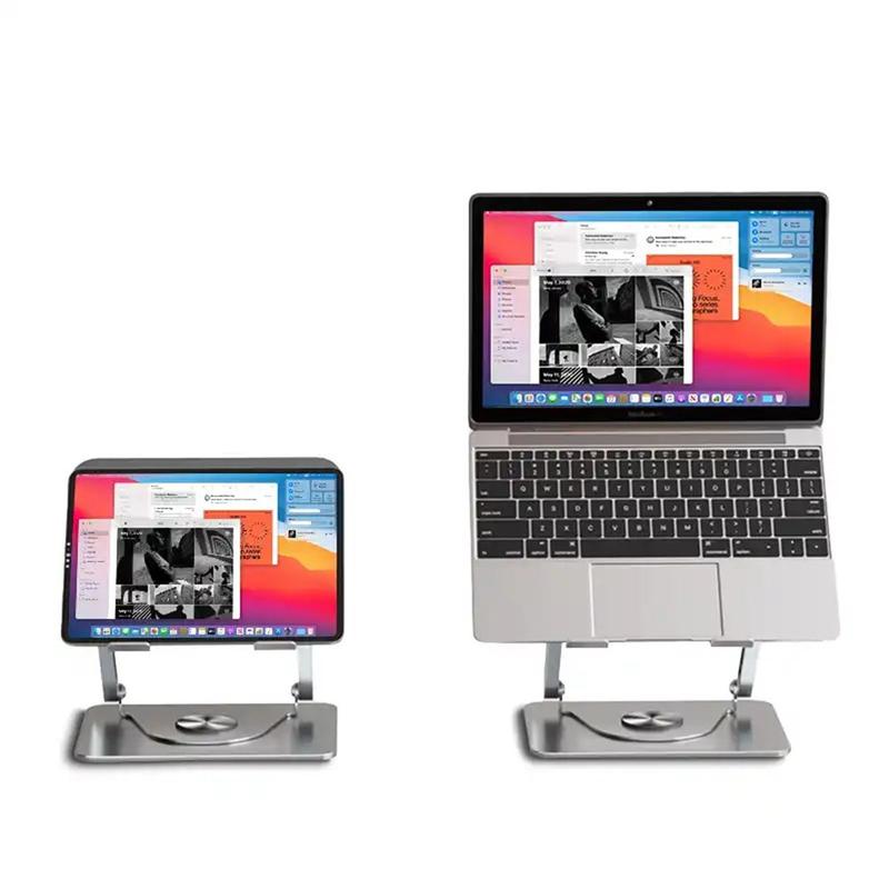 Carbon Steel Dual-Arm Rotating Laptop Stand with Magnetic Phone Holder - Height Adjustable Notebook & Tablet Holder (up to 15.6”)