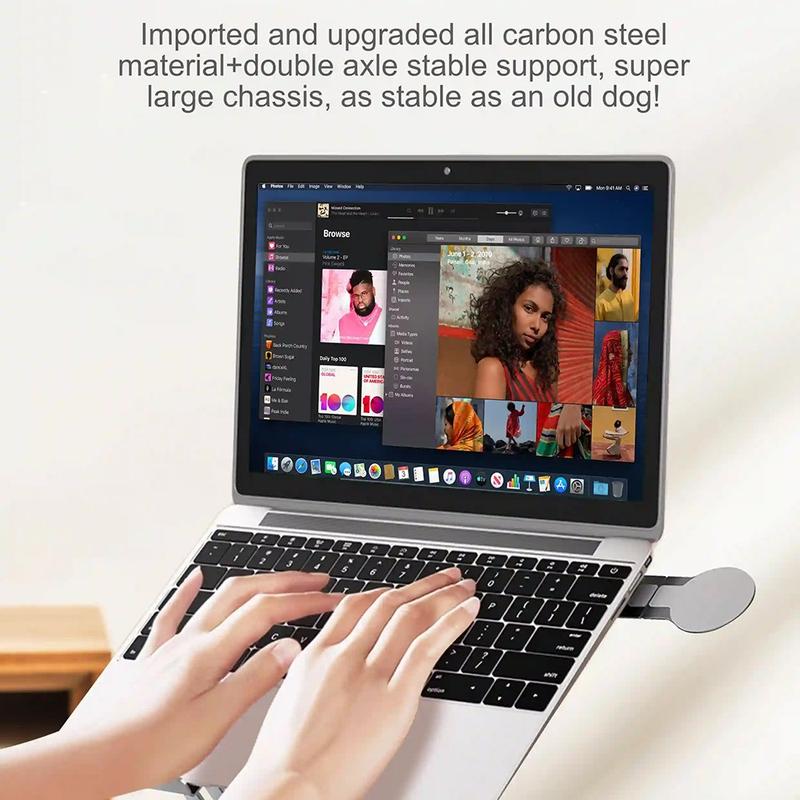 This carbon steel laptop stand is engineered to improve posture and reduce strain. With an adjustable height range of 15–30 cm, it allows you to set your device at eye level, helping eliminate neck and shoulder fatigue during long working hours.