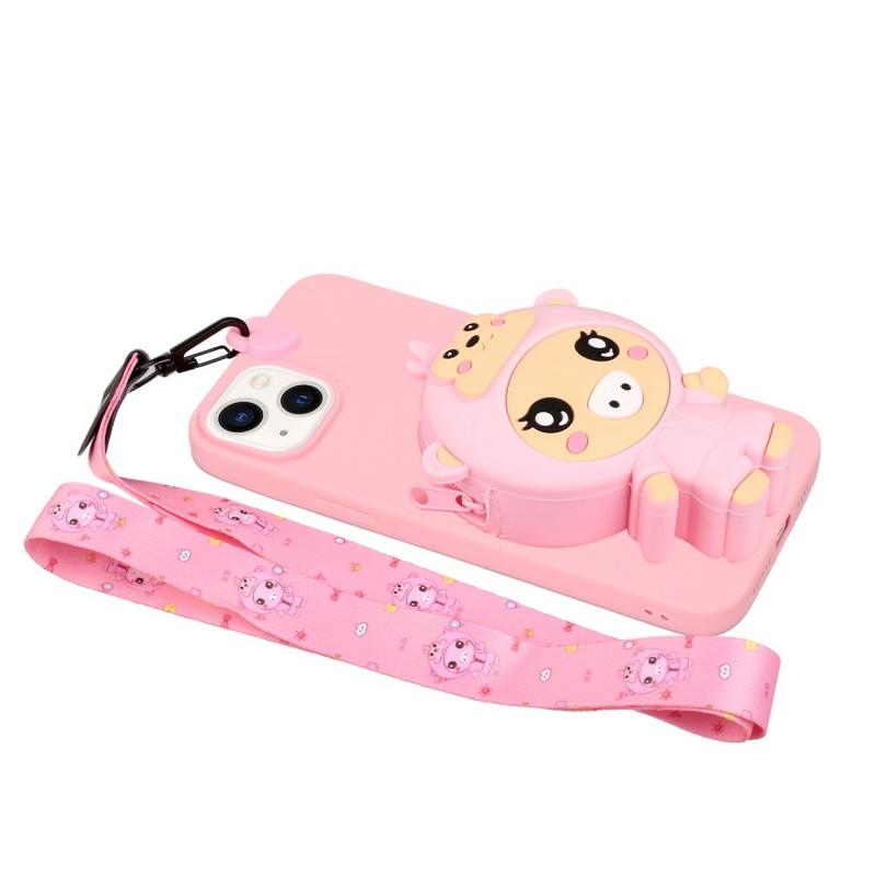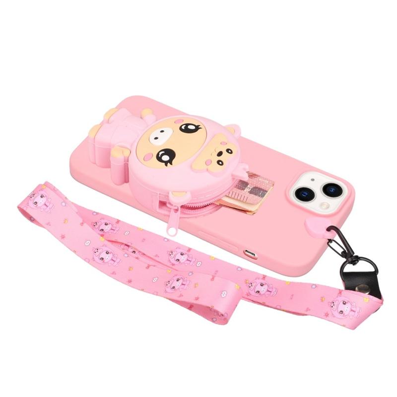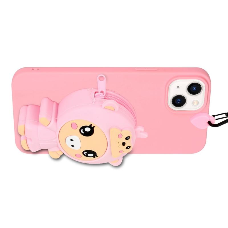 For iPhone 14 Plus Anti-Fall Phone Case Shockproof TPU Phone Cover with Silicone Zippered Pocket / Lanyard