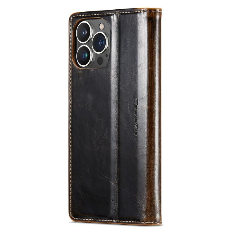 CASEME 003 Series PU Leather Phone Case For iPhone 14 Pro Max, Shockproof Retro Waxy Texture Magnetic Closure Phone Cover Stand Wallet