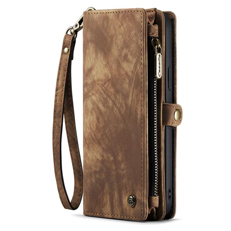 CASEME 008 Series for iPhone 14 Plus Multi-Functional Detachable Magnetic Phone Case Split Leather Stand Zipper Pocket Wallet Cover with Strap