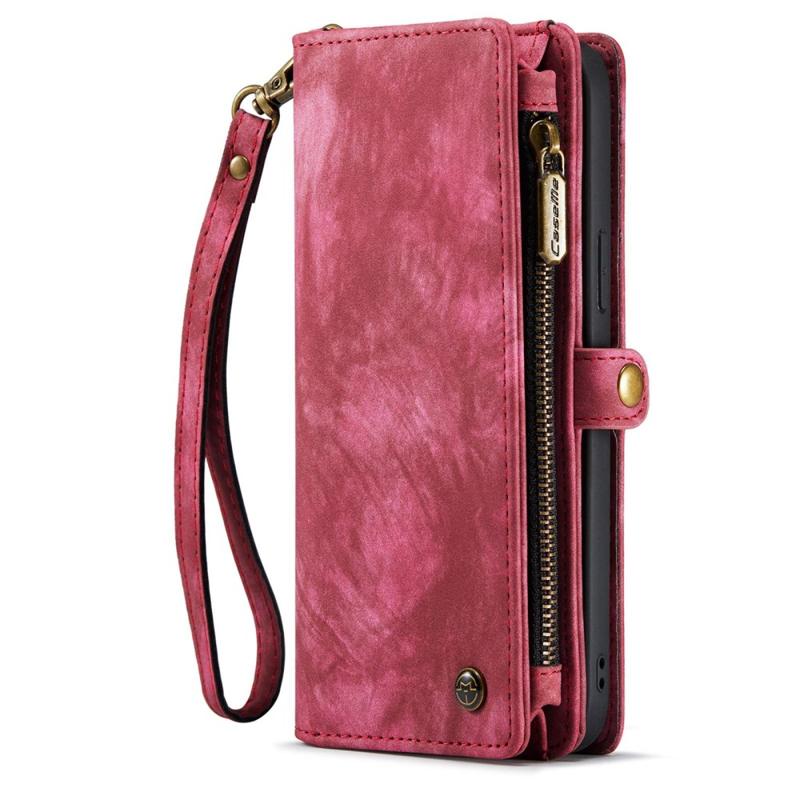 CASEME 008 Series for iPhone 14 Plus Multi-Functional Detachable Magnetic Phone Case Split Leather Stand Zipper Pocket Wallet Cover with Strap