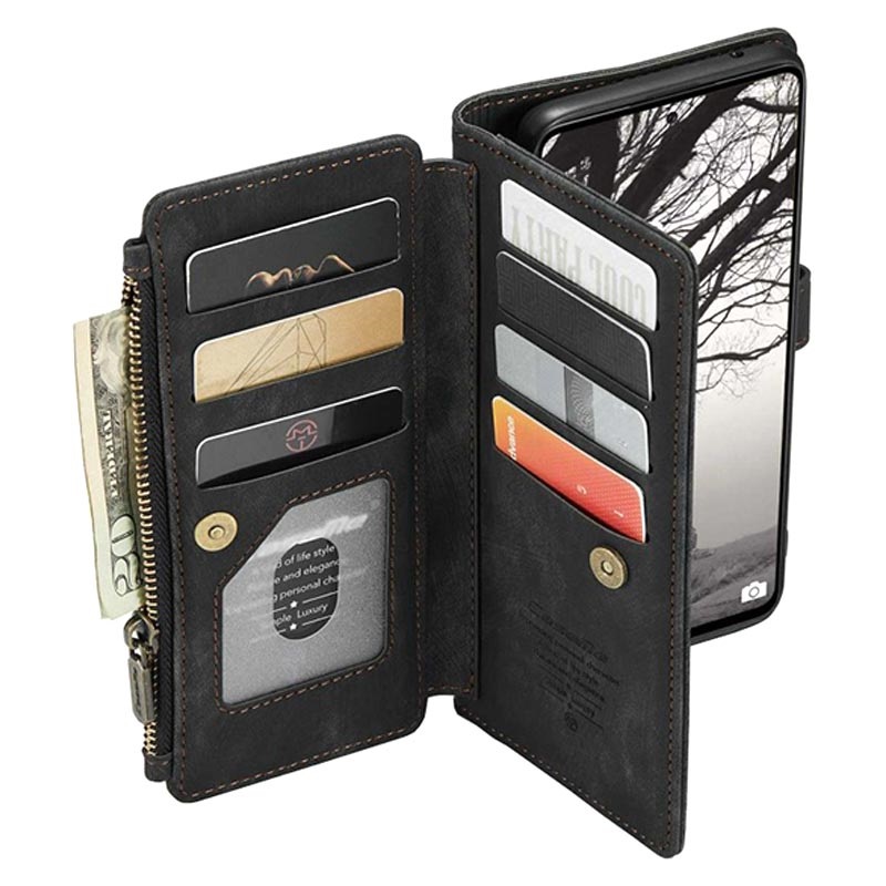 Empty your pockets and feel more comfortable - put all your essentials together with your Samsung Galaxy A53 5G in this fantastic multifunctional wallet case! It's made of high-quality polyurethane and TPU material, secured with magnetic closure. The case has an outside zipper pocket, while the inside is one cash slot and ten card slots! Besides, you can use the case as a kickstand and enjoy watching videos hands-free on your Samsung Galaxy A53 5G!