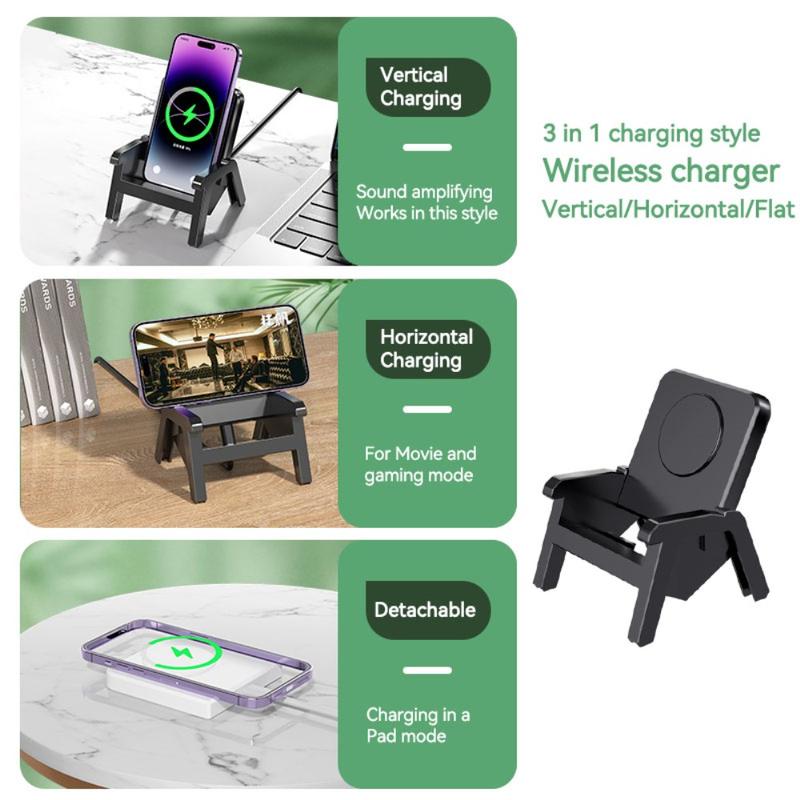 Chair Style Wireless Charging Stand & Sound Amplifier - 15W