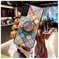 Karirana Hibridna Zaštitna Maska sa Funkcijom Stalka i Trakom za Samsung Galaxy S21 5G