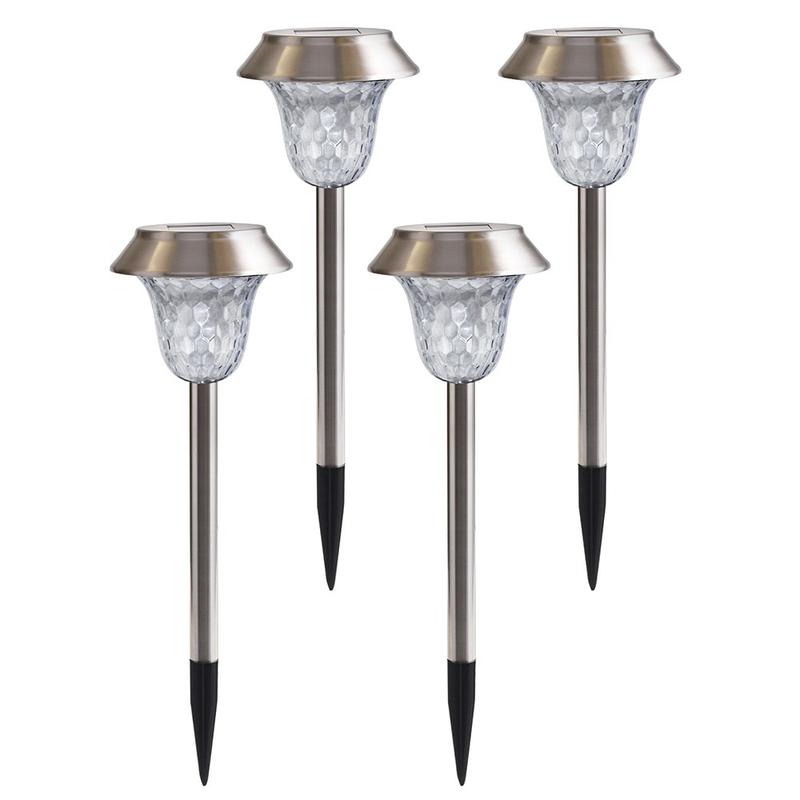 CIS-57453A 4-Pack Stainless-Steel Solar Garden Path Lamps - IP65 - Warm White and RGB