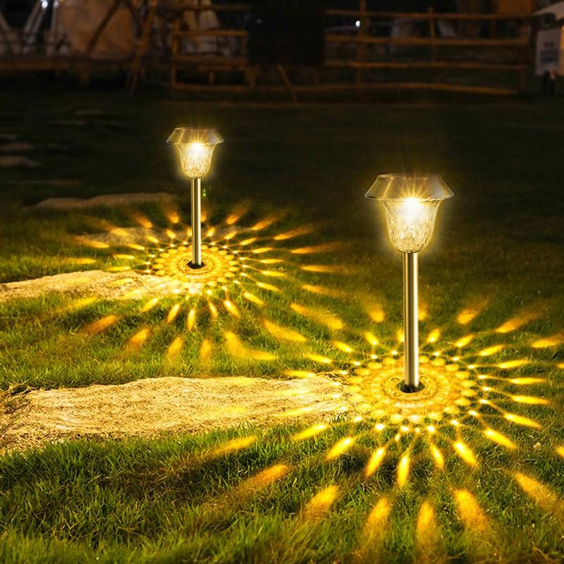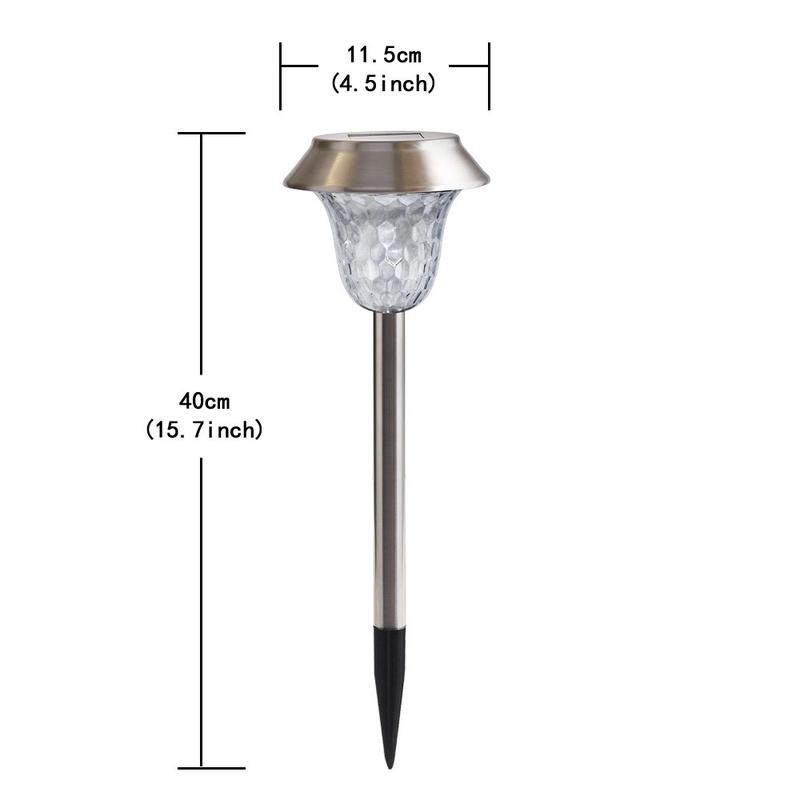 Elevate evening gatherings with four elegant 41 cm stainless-steel stakes, each crowned by an 11.5 cm diffuser that can glow cosy warm-white or cycle through soft RGB hues. A high-efficiency 2 V / 100 mA polysilicon panel tops up the built-in 1.2 V 800 mAh Ni-MH battery in 6-8 h of direct sun, then delivers up to 12 h of light—automatically, thanks to dusk-to-dawn light control.