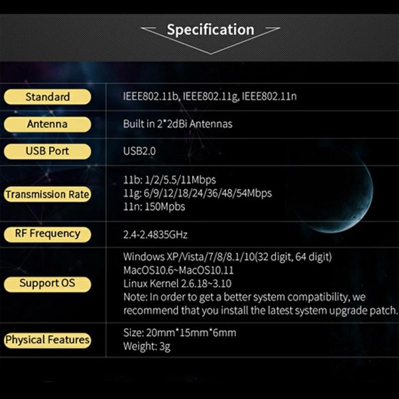 - Transmission Rate 11n: 150 Mbps