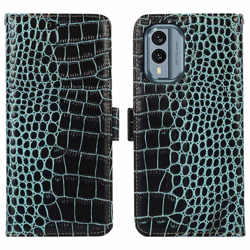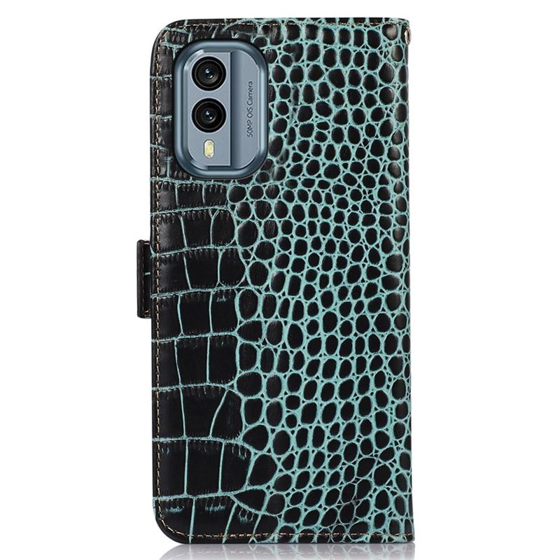 Stilizujte izgled svog Nokia X30 ovom izuzetnom kožnom torbicom-novčanikom sa šarom krokodilske kože. Opremljen sa nekoliko slotova za kartice, pregradom za gotovinu i tehnologijom za blokiranje RFID-a, efikasno će zameniti vaš novčanik. Magnetna kopča osigurava futrolu od otvaranja, a pametan dizajn omogućava upotrebu kao postolje.