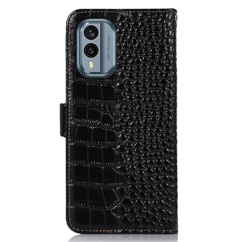 Stilizujte izgled svog Nokia X30 ovom izuzetnom kožnom torbicom-novčanikom sa šarom krokodilske kože. Opremljen sa nekoliko slotova za kartice, pregradom za gotovinu i tehnologijom za blokiranje RFID-a, efikasno će zameniti vaš novčanik. Magnetna kopča osigurava futrolu od otvaranja, a pametan dizajn omogućava upotrebu kao postolje.