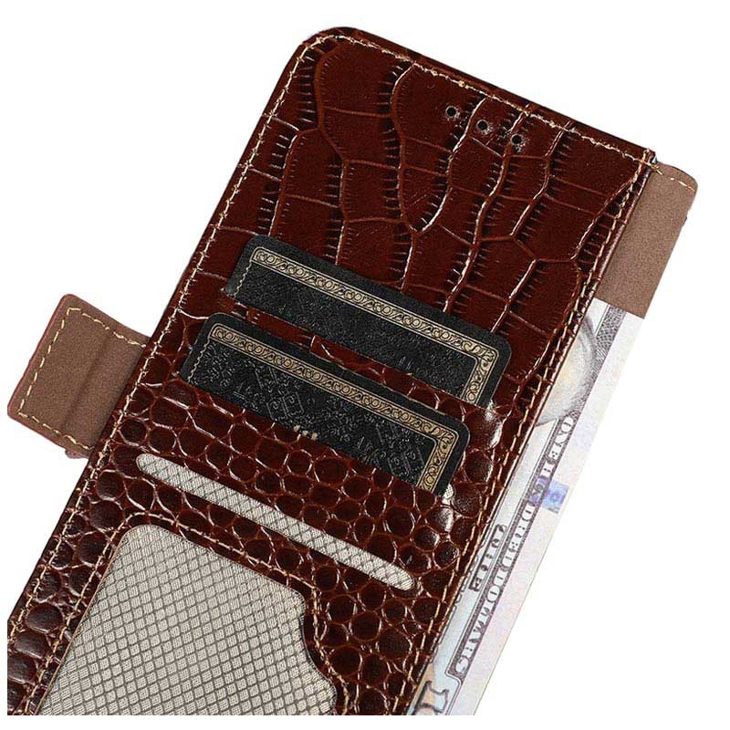 Keep all your credit cards, ID, and cash in the same place with your Samsung Galaxy A33 5G in this sublime Crocodile series wallet case with RFID blocking technology. The case contains a couple of card slots, an ID slot, and a money pocket. Thanks to the magnetic clasp enclosure, your valuables will be safe. The wallet case is made of high-quality cowhide and will protect your Samsung Galaxy A33 5G from daily damage.