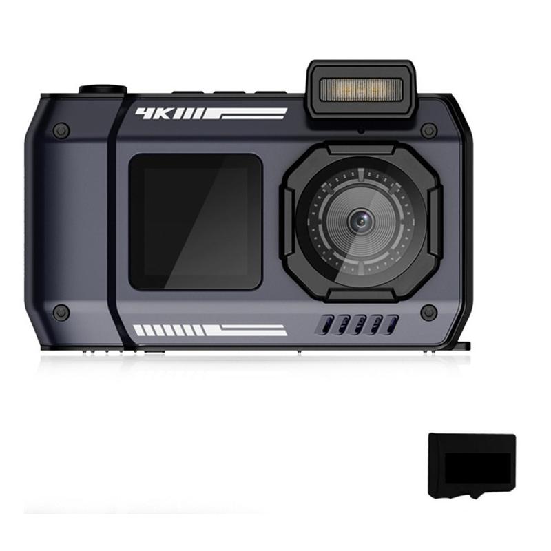 D50 Waterproof Action Camera with Dual Screens - IP68 10m, 2500mAh, Anti-Shake, 20 Filters, Includes 32GB TF Card
