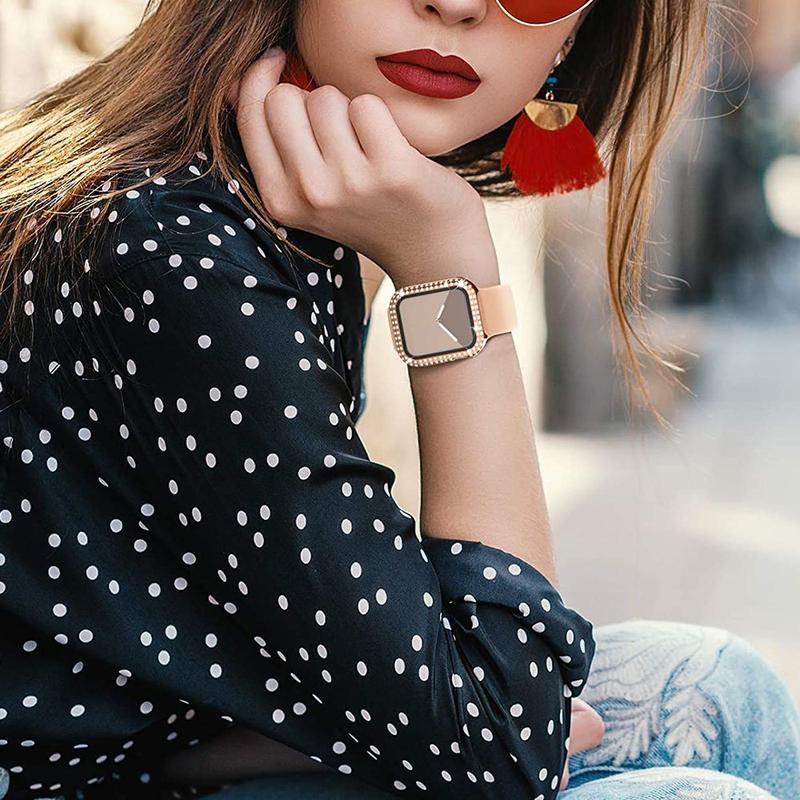 • Dekorativni Veštački Dijamant Maska sa Zaštitnim Kaljenim Staklom za Apple Watch SE (2022), Apple Watch SE, Apple Watch Series 6, Apple Watch Series 5, Apple Watch Series 4