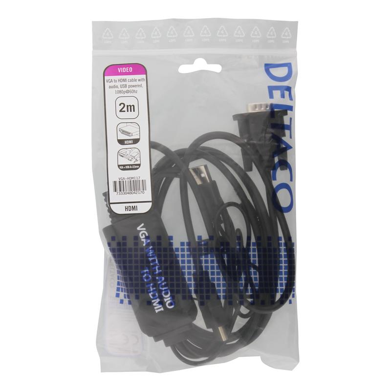 Deltaco VGA to HDMI Adapter Cable with Audio - USB powered