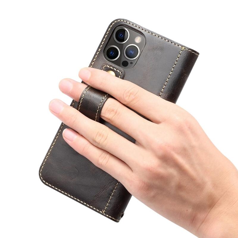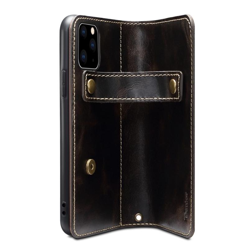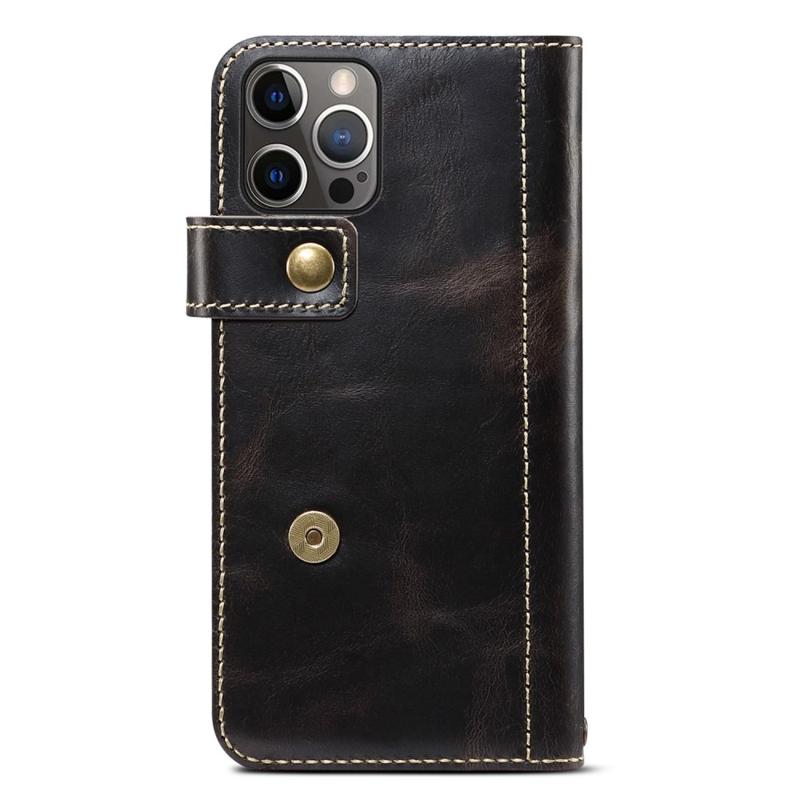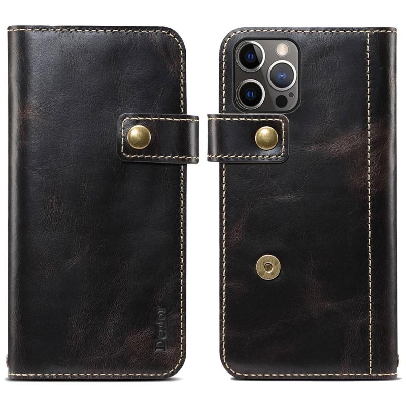 DENIOR Anti-Drop Phone Case for iPhone 14 Pro Genuine Leather Protective Cover Magnetic Clasp Wallet Phone Case with Stand