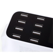 Napunite 8 uređaja ovim desktop punjačem sa 8 portova i jedinstvenim LED displejem, koji će Vas obaveštavati o jačini struje, naponu i stanju baterije u realnom vremenu. Uz to, smart tehnologija prepoznaje tip uređaja i određuje optimalnu jačinu struje. Kada se baterija Vašeg uređaja napuni, punjač automatski smanjuje brzinu punjenja i prelazi na trickle-charge režim. Ovaj desktop punjač sa 8 portova i LED displejem ima i zaštitu od kratkog spoja i prekomernog punjenja, što garantuje bezbedno punjenje Vaših uređaja.