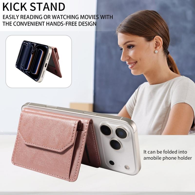 This wallet offers functionality, security and style in one compact accessory. With strong magnetic attachment, RFID protection and a built-in stand, it simplifies daily carry while enhancing phone usability.