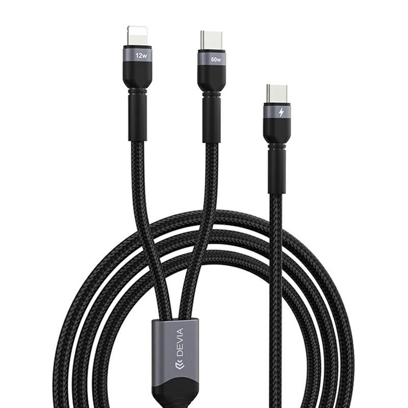 Devia EC648 Extreme Speed 2-in-1 USB-C Cable - USB-C to USB-C 60W PD and Lightning 12W, Braided Nylon, Data Sync, 1.2m