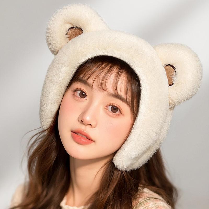 DEZ45 Cute Plush Bear Ear Winter Headband – Warm Windproof Hairband for Women