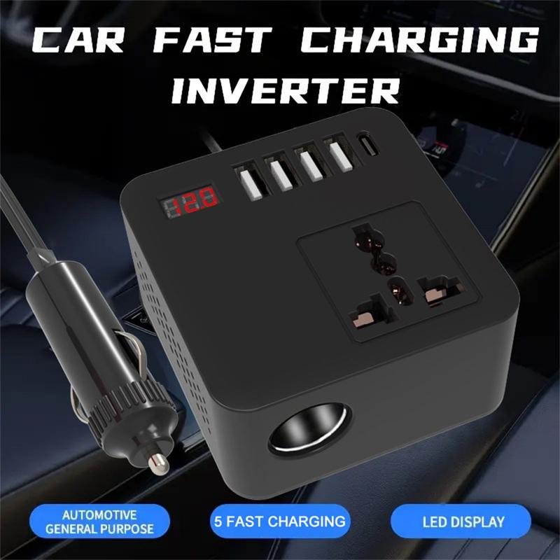 Digital Display Car Power Inverter - 12V/24V DC to 110V/220V AC Converter with USB-C, USB-A, and AC Outlet 150W