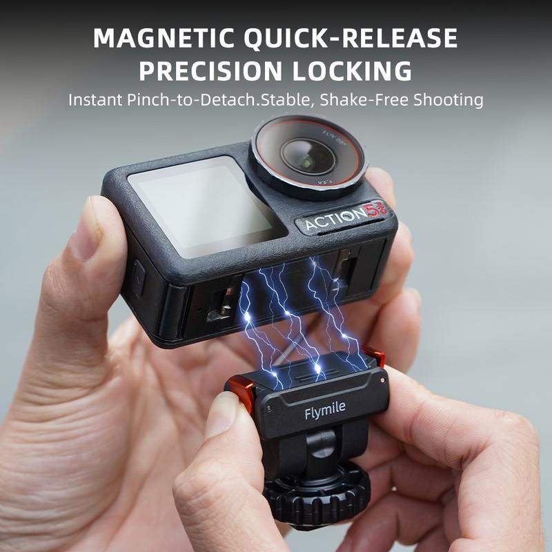 This mount combines fast magnetic release, flexible tilt adjustment, and accessory-ready mounting options-making it a practical upgrade for creators who want a more versatile and stable DJI Osmo Action setup.